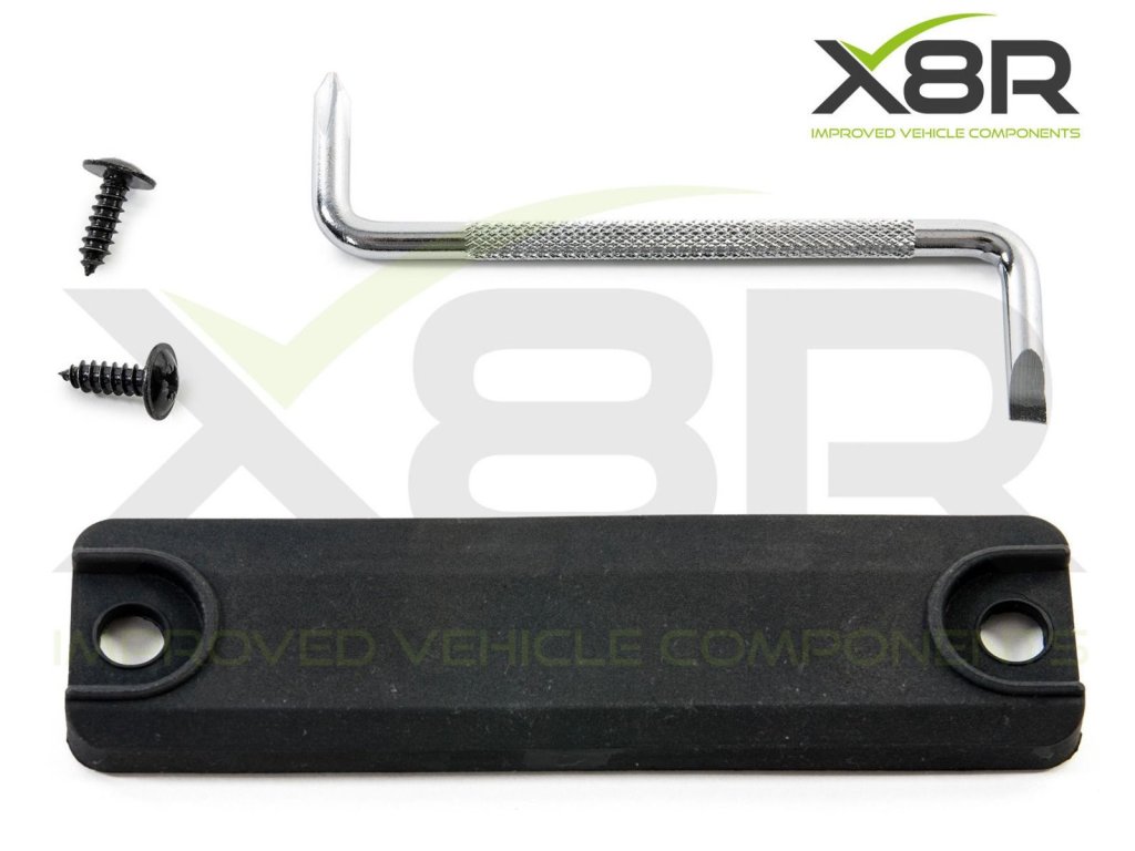 Součástí balení je také úhlový šroubovák, který budete k úspěšné montáži vzhledem k úhlu šroubů potřebovat. Naše kompletní sada vám umožní díl rychle a levně opravit. Rozlučte se s černými pozůstatky gumy na rukou po otevírání kufru.